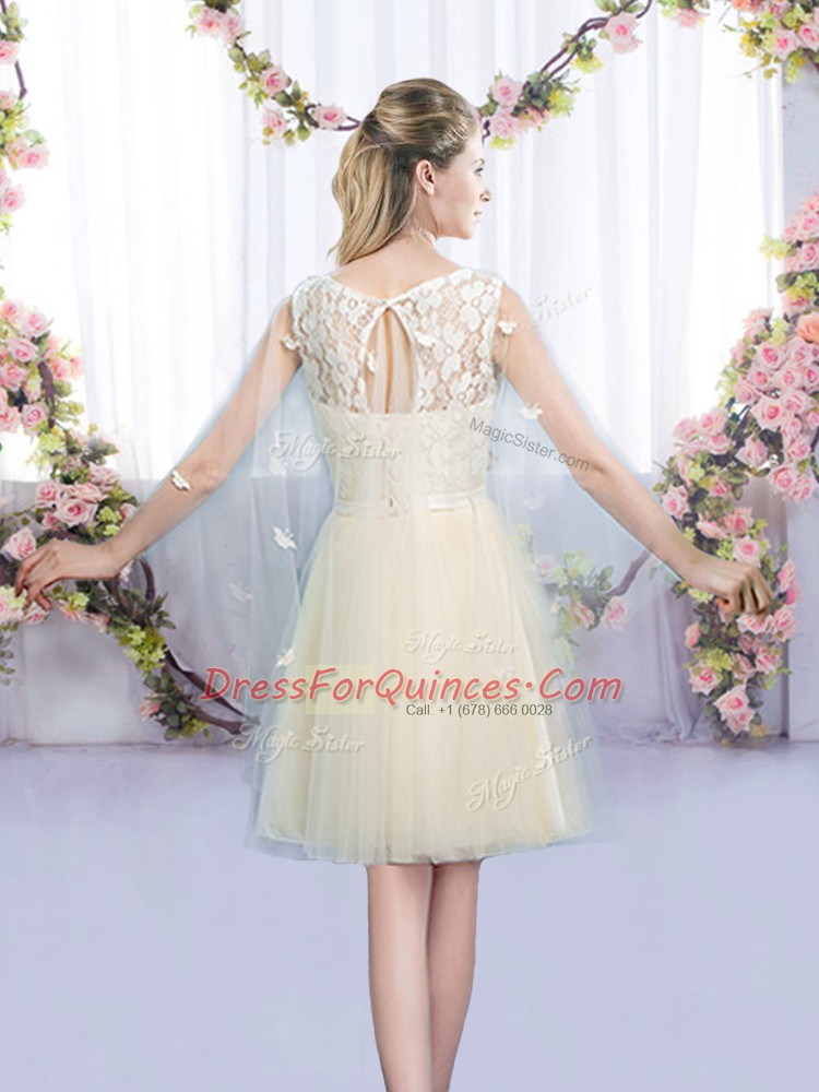 Scoop Sleeveless Tulle Quinceanera Court Dresses Lace and Bowknot Lace Up