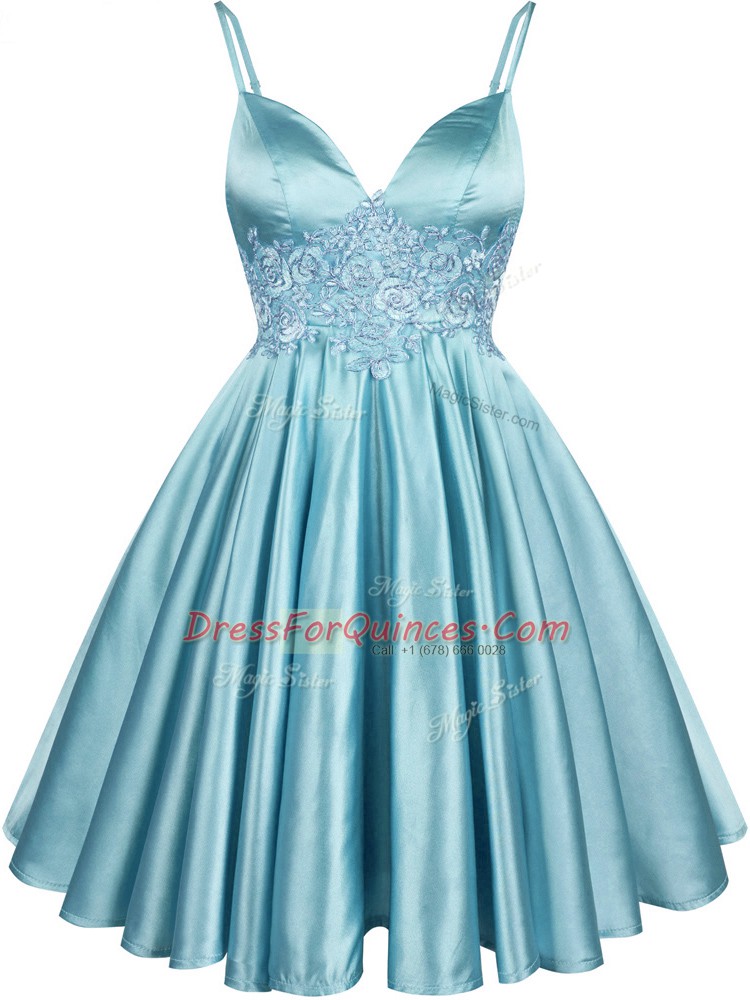 Sophisticated Lace Quinceanera Court Dresses Aqua Blue Lace Up Sleeveless Knee Length