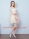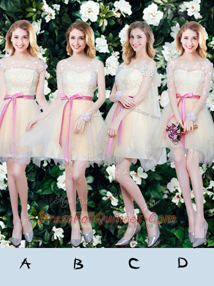 Sophisticated Tulle Off The Shoulder Short Sleeves Lace Up Lace and Appliques and Ruffles and Bowknot Dama Dress in Champagne