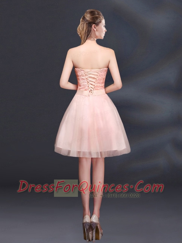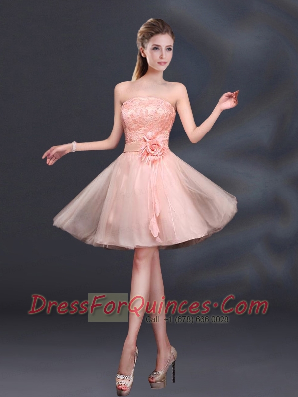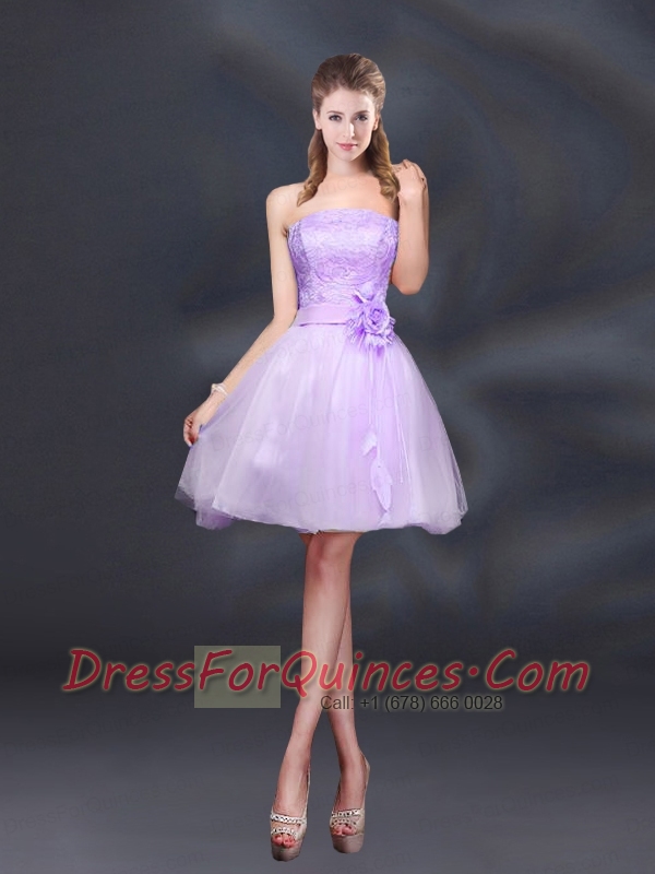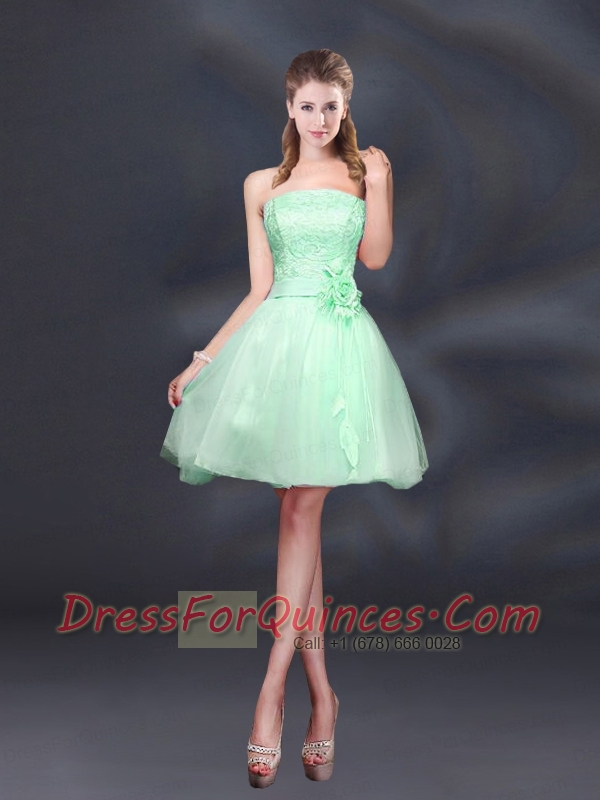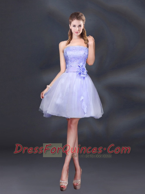 Strapless A Line Hand Made Flowers Dama Dress for 2015