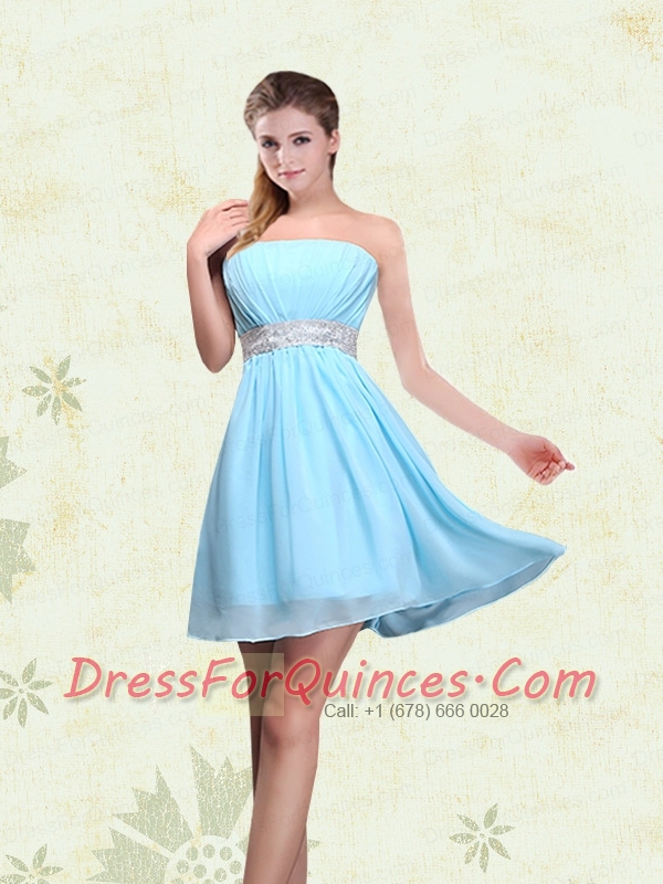 Strapless A Line Ruching Sequins Chiffon Dama Dresses