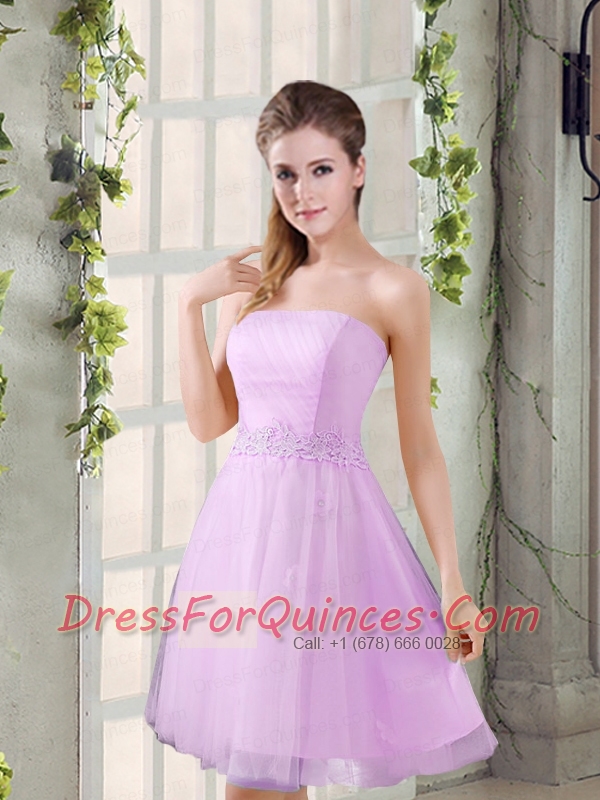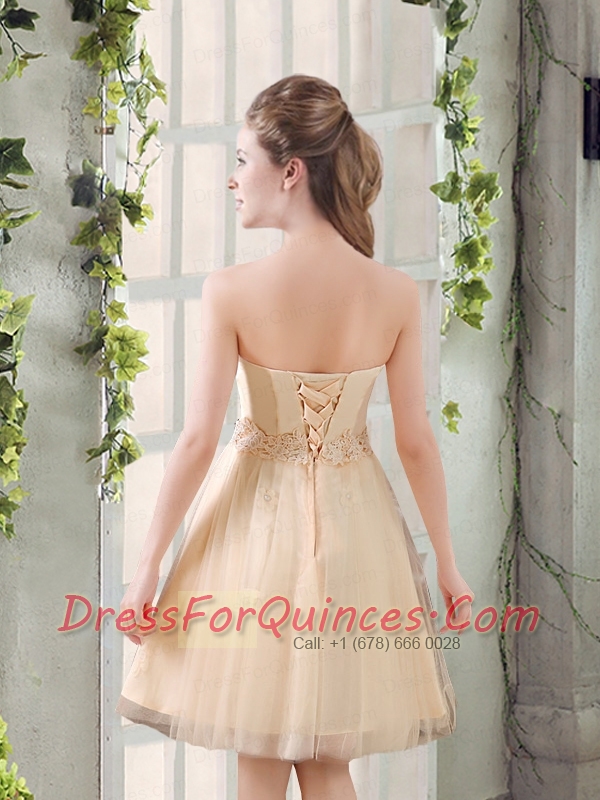 Strapless Appliques 2015 New Dama Dress in Champagne