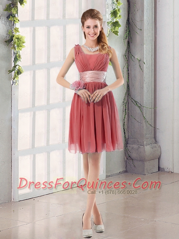 Straps Ruching Sweetheart A Line 2015 Elegant Dama Dress