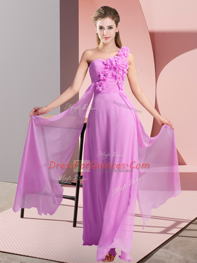 Super Lilac Sleeveless Hand Made Flower Floor Length Dama Dress