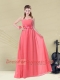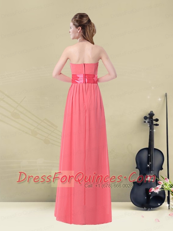 Sweetheart Watermelon Long Dama Dress with Bow Belt