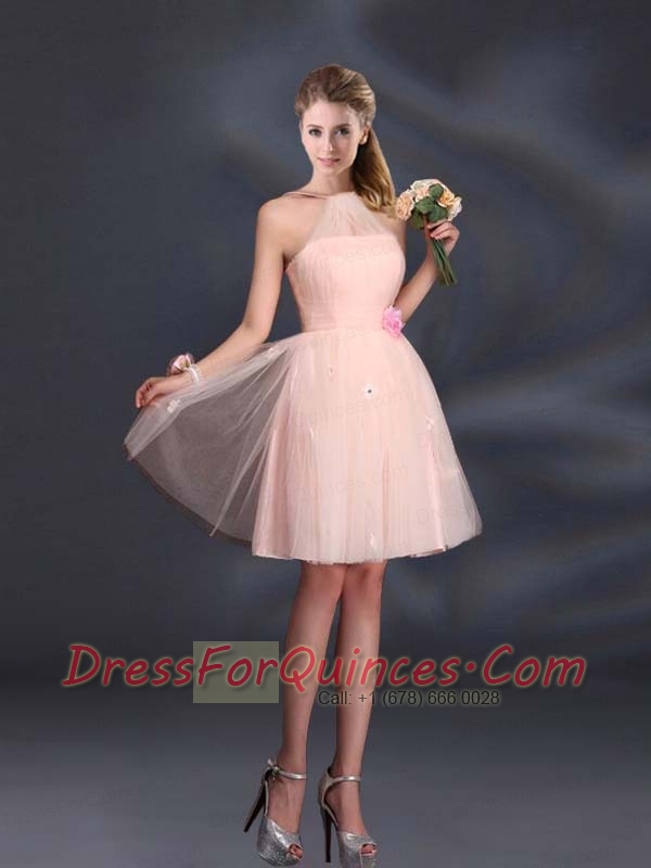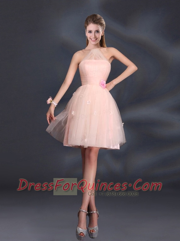 Tulle Appliques Mini Length 2015 Dama Dresses with Halter