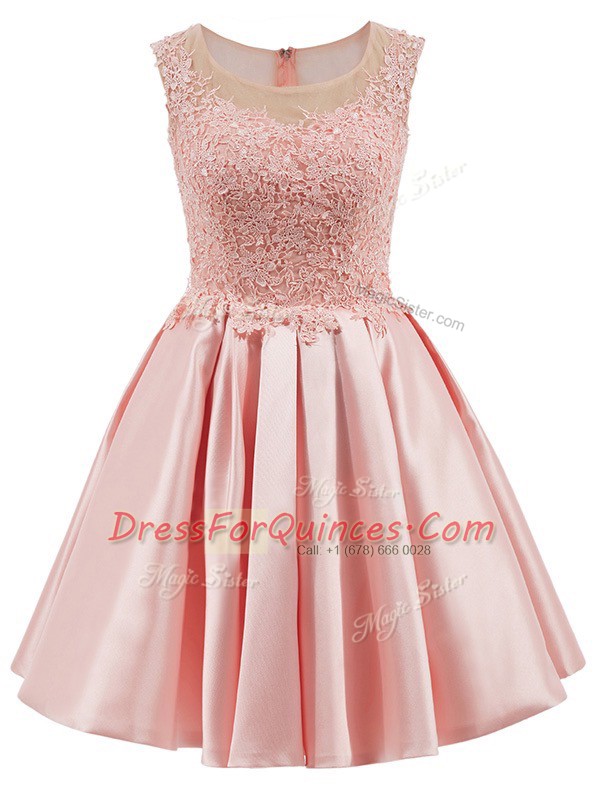 Unique Baby Pink Sleeveless Mini Length Lace Zipper Dama Dress