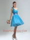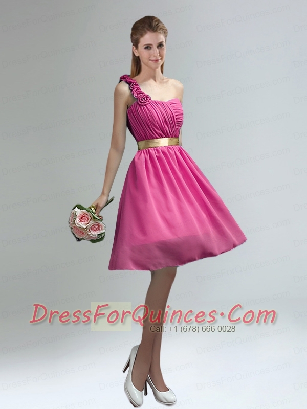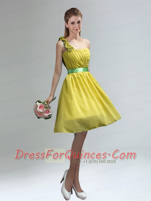 Unique One Shoulder Ruches Teal Dama Dresses with Belt