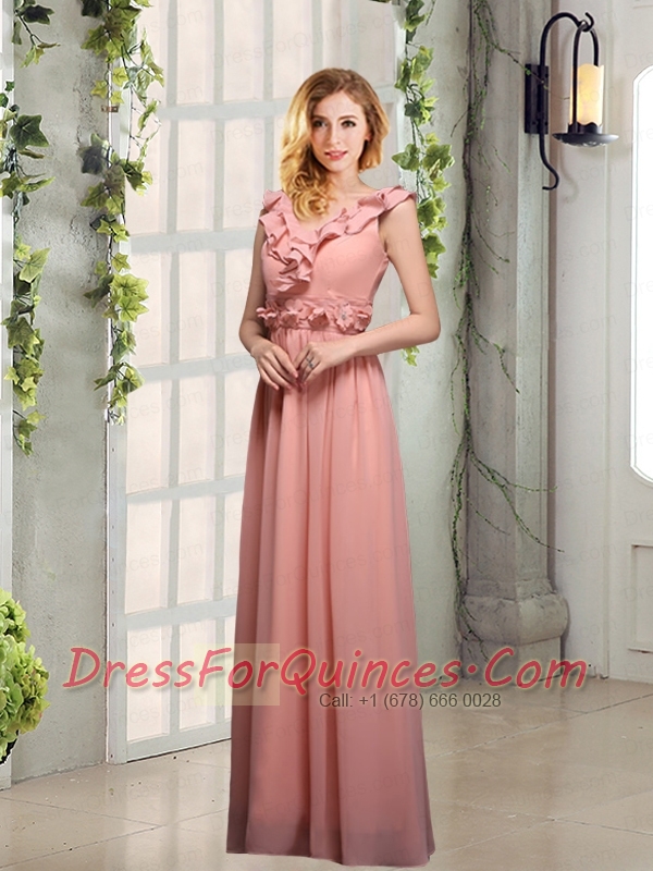 V Neck Empire Appliques Dama Dresses with Floor Length