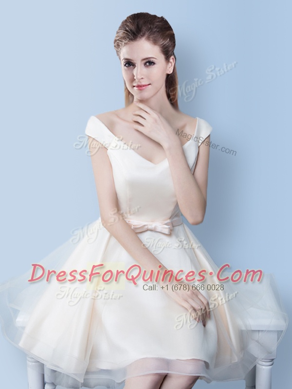 V-neck Cap Sleeves Tulle Quinceanera Court Dresses Bowknot Lace Up