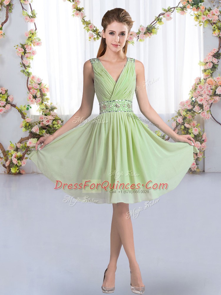 Yellow Green Zipper V-neck Beading Court Dresses for Sweet 16 Chiffon Sleeveless