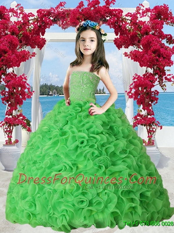 2016 Summer Cheap Spring Green Organza Ruffles Little Girl Pageant Dress with Beading