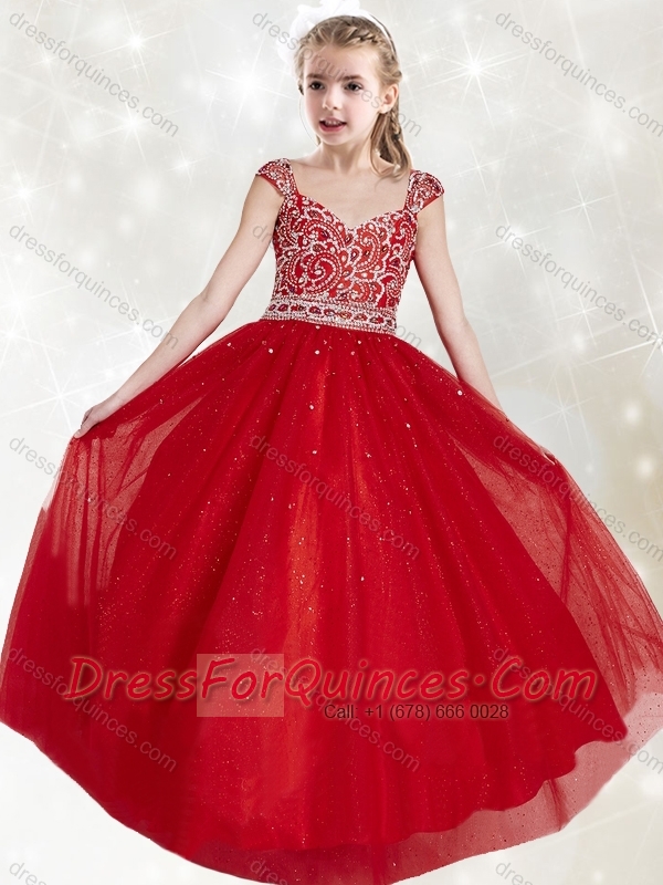 Adorable Straps Cap Sleeves Little Girl Pageant Dress with Beading