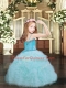 Apple Green Lace Up Kids Formal Wear Beading and Ruffles and Pick Ups Sleeveless Floor Length