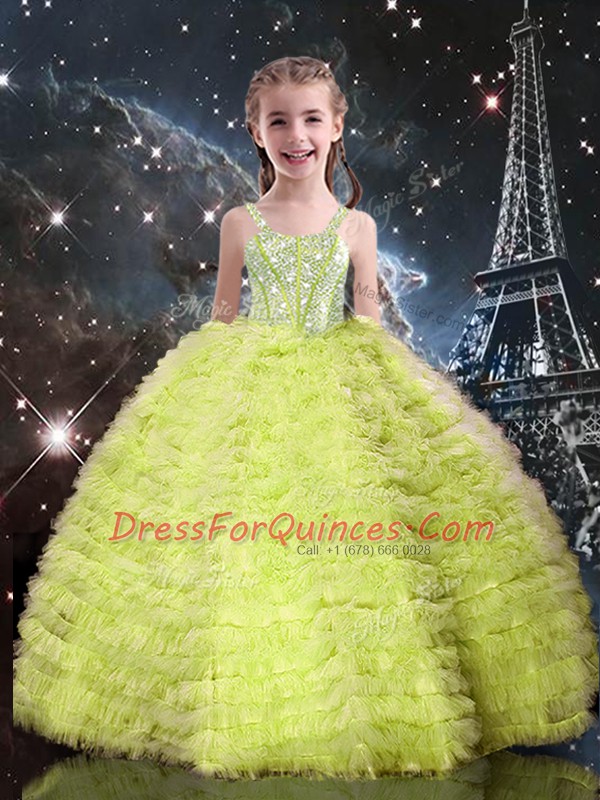 Beauteous Sleeveless Lace Up Floor Length Beading and Ruffled Layers Little Girls Pageant Dress