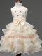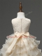Champagne Ball Gowns Scoop Sleeveless Organza Knee Length Zipper Lace and Ruffled Layers and Bowknot Little Girls Pageant Gowns