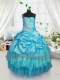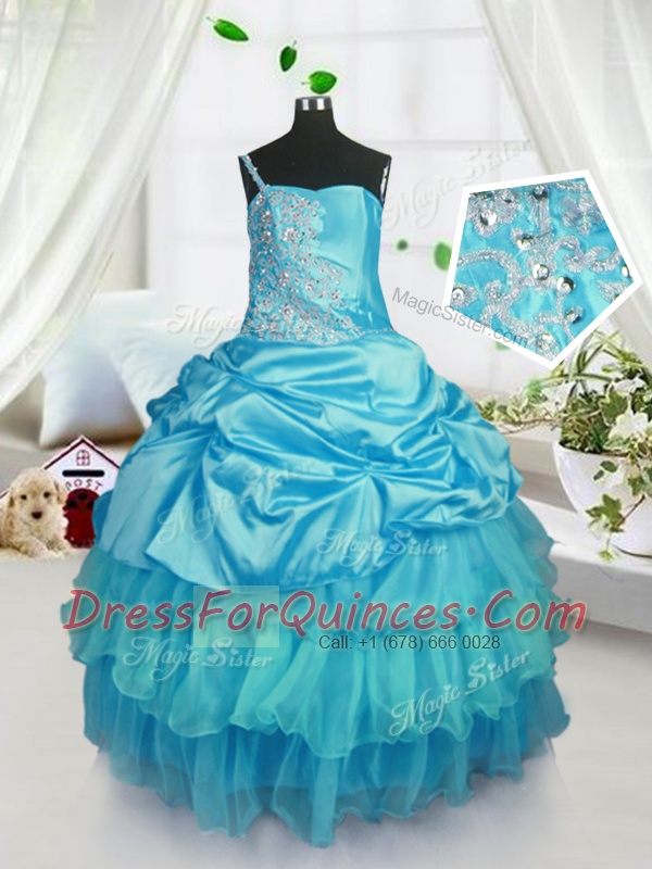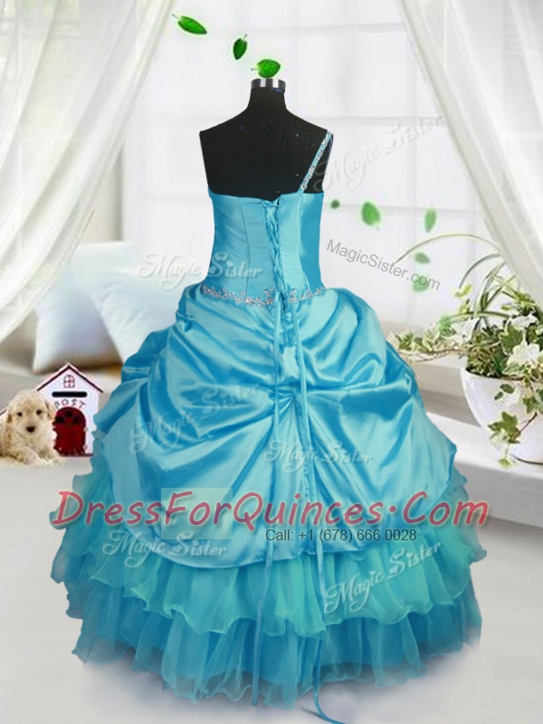 Delicate Floor Length Lace Up Pageant Gowns For Girls Aqua Blue for Military Ball and Sweet 16 and Quinceanera with Pick Ups