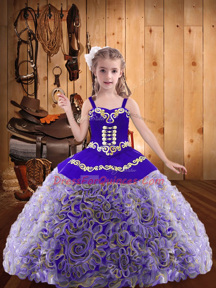 Floor Length Ball Gowns Sleeveless Multi-color Little Girls Pageant Dress Lace Up