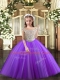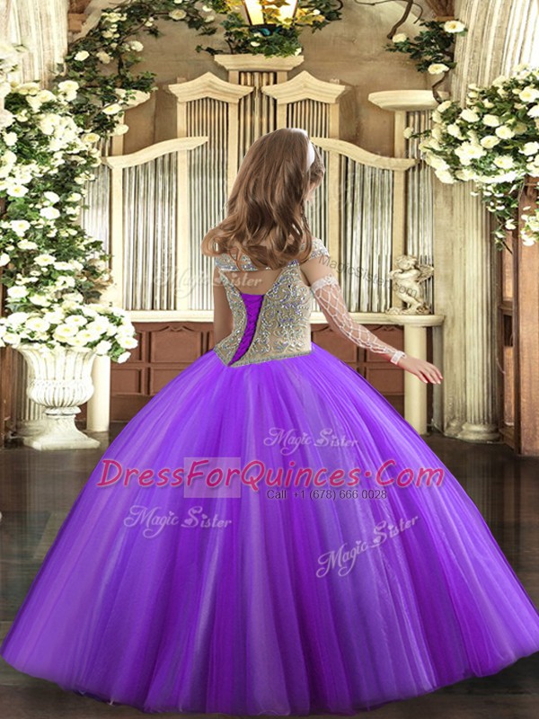 Purple Ball Gowns Tulle Off The Shoulder Sleeveless Beading Floor Length Lace Up Kids Formal Wear