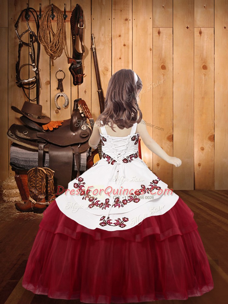 Sleeveless Embroidery Lace Up Pageant Gowns For Girls