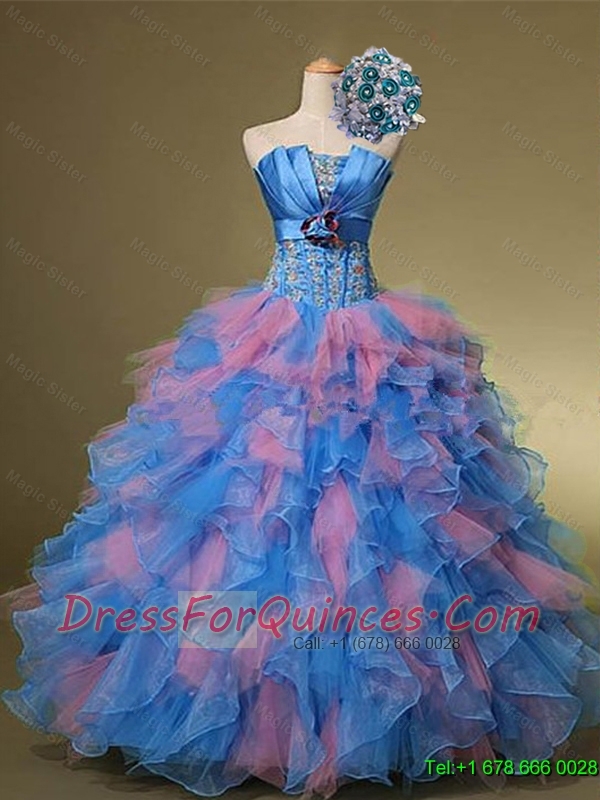 2015 Beautiful Strapless Quinceanera Dresses with Hand Made Flowers and Beading