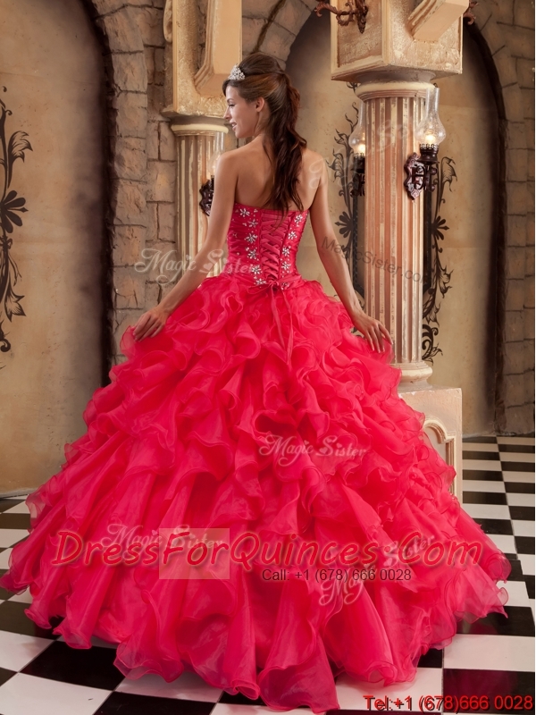 2016 Beautiful Beading and Ruffles Quinceanera Dresses in Coral Red