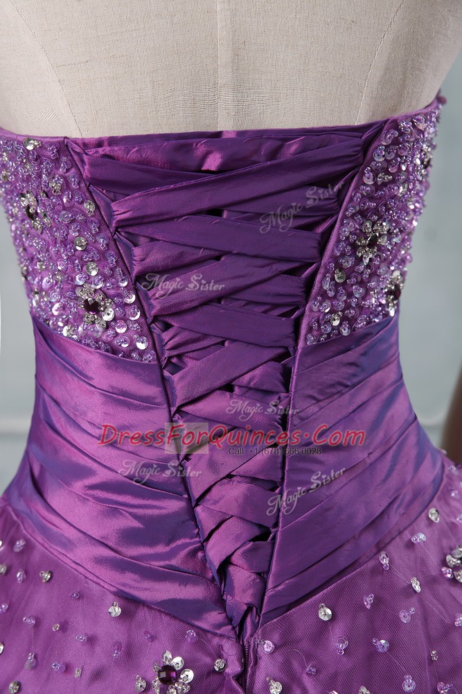 Admirable Eggplant Purple and Purple Sweet 16 Dress Sweet 16 and Quinceanera with Beading Strapless Sleeveless Lace Up