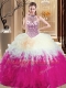 Adorable Multi-color Ball Gowns Halter Top Sleeveless Tulle Floor Length Lace Up Beading and Ruffles Quinceanera Gowns