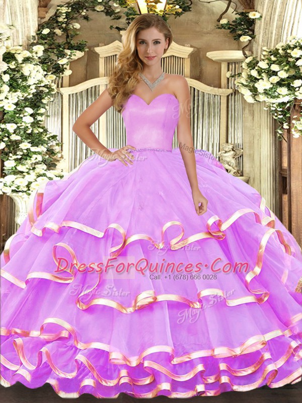 Amazing Lilac Lace Up Sweetheart Ruffled Layers Quinceanera Gown Organza Sleeveless
