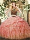 Baby Pink Ball Gowns Halter Top Sleeveless Organza Floor Length Zipper Beading and Ruffles Sweet 16 Dress