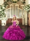 Beautiful Beading and Ruffles Sweet 16 Dress Fuchsia Lace Up Sleeveless Floor Length