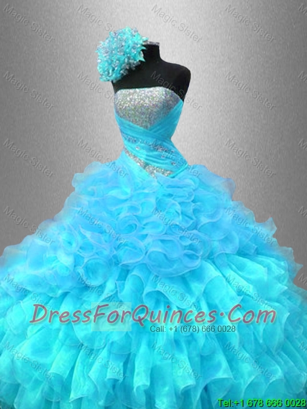 Beautiful Strapless Sequined Sweet 16 Gowns with Ruffles