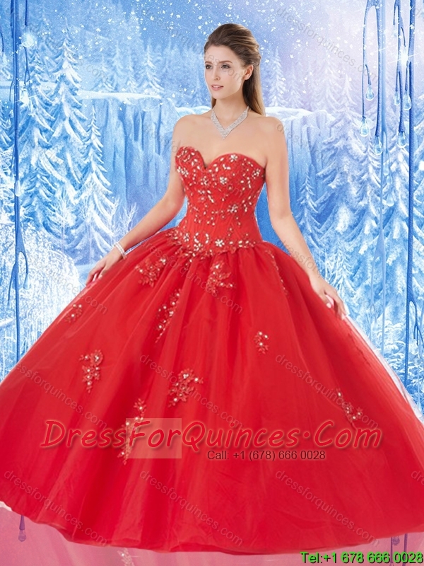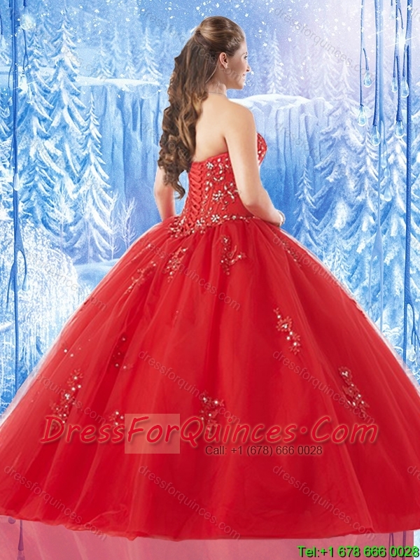 Best Selling Appliques Red Quinceanera Gowns with Beading