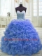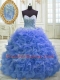 Blue Quinceanera Dress Organza Sweep Train Sleeveless Beading and Ruffles