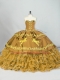 Brown Satin and Organza Lace Up Quinceanera Dresses Sleeveless Brush Train Embroidery and Ruffled Layers