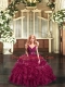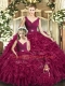 Burgundy Backless V-neck Beading and Ruffles Vestidos de Quinceanera Organza Sleeveless