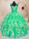 Cheap Floor Length Green Quinceanera Dresses Organza Sleeveless Beading and Ruffles