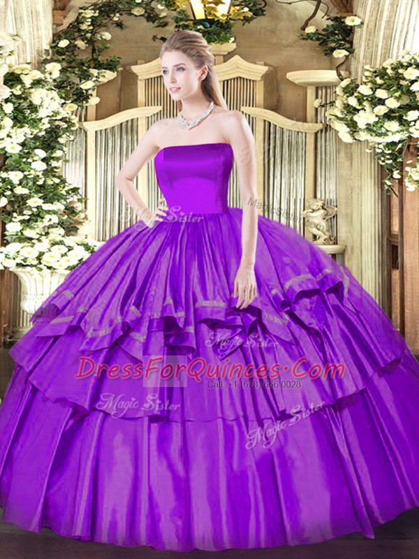 Classical Strapless Sleeveless Zipper Quinceanera Gowns Eggplant Purple Organza and Taffeta