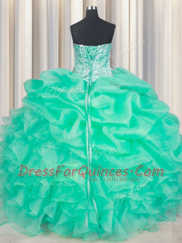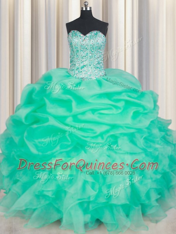 Clearance Apple Green Sleeveless Floor Length Beading and Ruffles and Pick Ups Lace Up 15 Quinceanera Dress