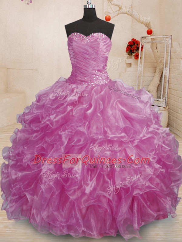 Clearance Lilac Lace Up Sweetheart Beading and Ruffles 15 Quinceanera Dress Organza Sleeveless