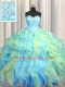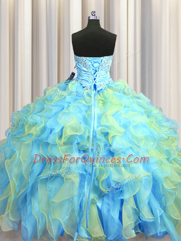 Clearance Multi-color Organza Lace Up Quinceanera Gowns Sleeveless Floor Length Beading and Appliques and Ruffles