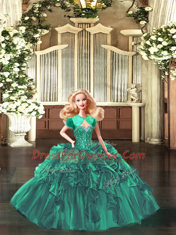 Clearance Sweetheart Sleeveless Lace Up Sweet 16 Dresses Green Organza