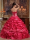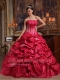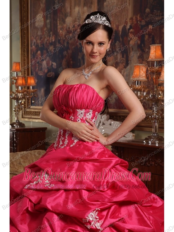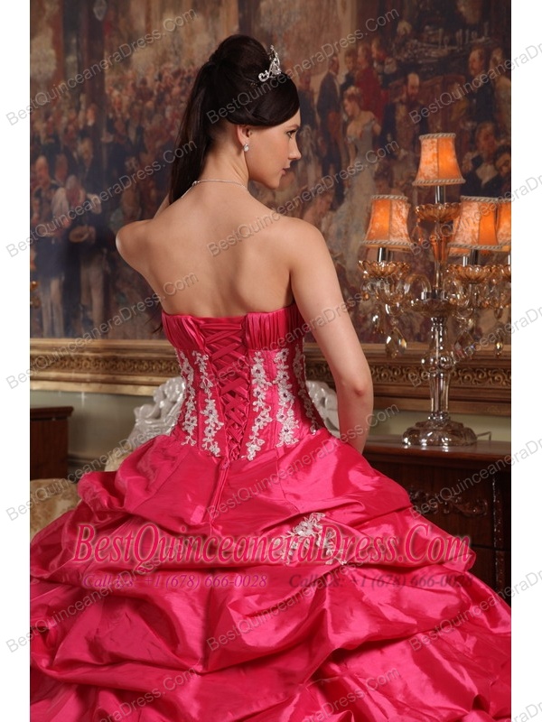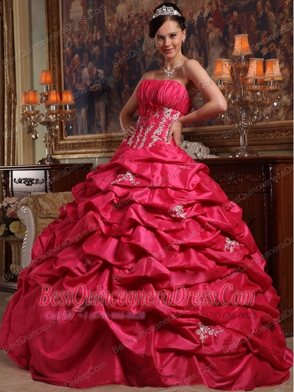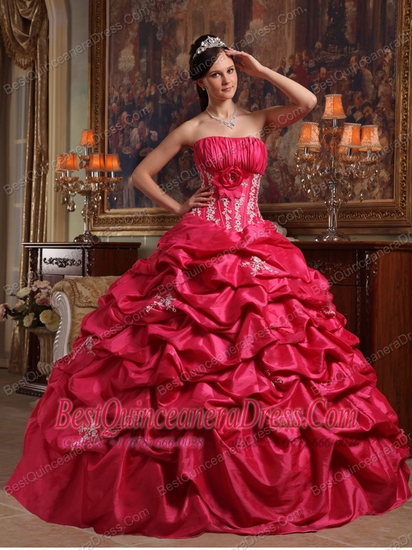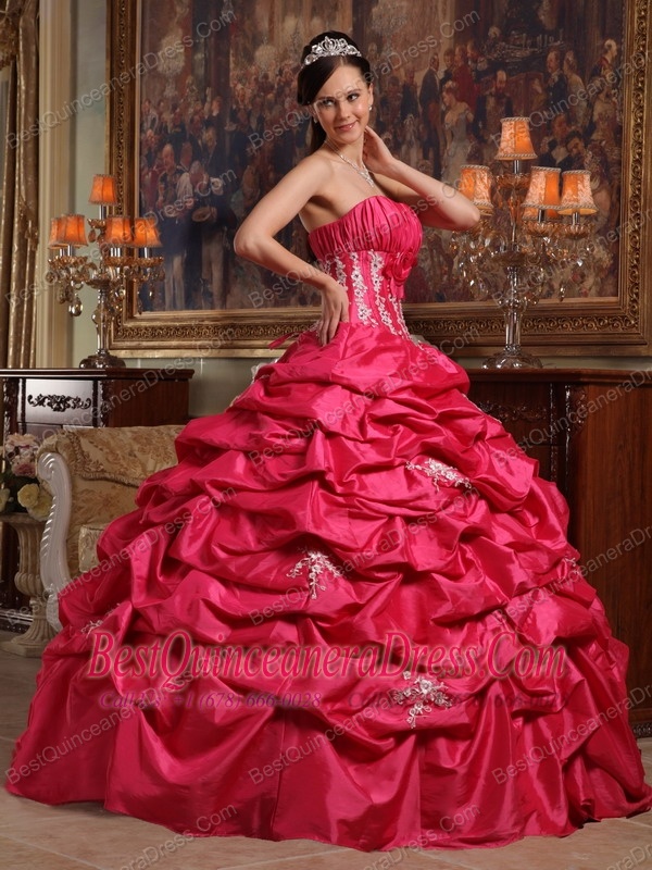 Coral Red Ball Gown Strapless Floor-length Appliques Taffeta Quinceanera Dress