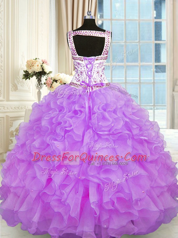 Custom Design Lilac Sweetheart Lace Up Beading and Appliques and Ruffles Quinceanera Gown Sleeveless