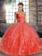 Custom Design Watermelon Red Off The Shoulder Lace Up Beading and Appliques Quinceanera Gown Sleeveless