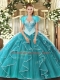 Custom Made Teal Ball Gowns Tulle Sweetheart Sleeveless Beading Floor Length Lace Up Sweet 16 Dress
