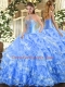 Customized Sleeveless Organza Floor Length Lace Up Quinceanera Dresses in Baby Blue with Beading and Ruffled Layers