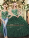 Delicate Sweetheart Sleeveless Ball Gown Prom Dress Floor Length Beading and Ruffles Dark Green Tulle