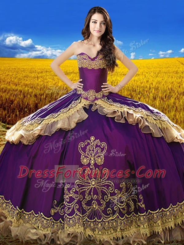 Delicate Taffeta Sweetheart Sleeveless Lace Up Beading and Embroidery Sweet 16 Dress in Purple