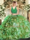 Discount High-neck Sleeveless 15 Quinceanera Dress Floor Length Beading and Ruffles Olive Green Tulle